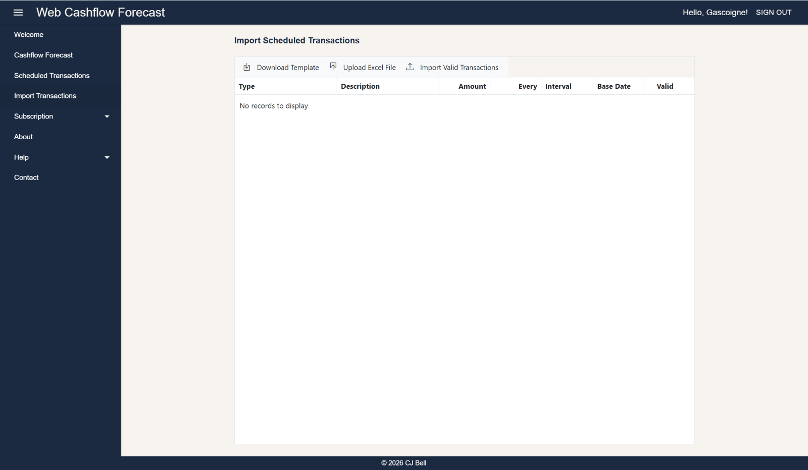 - Select Import Transactions from the menu, and the following page will be displayed.