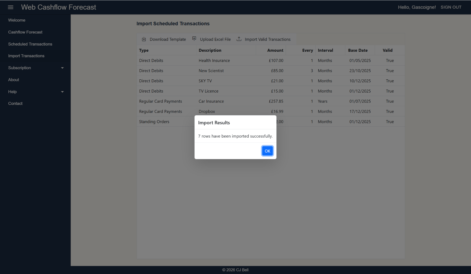 - A message will be displayed indicating how many transactions have been imported successfully (and if any duplicates have been found and not imported).